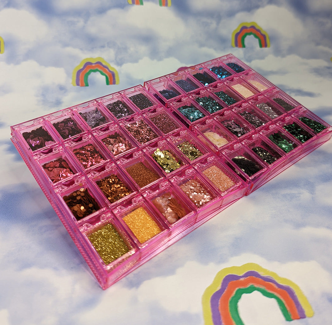 Excluding a vast range of plastic glitters (yes, lots of companies try and pass off plastic based glitters as biodegradable. They are NOT! 🙅) there are seven main types of “sustainable” glitters: cellophane-based glitter, cellulose acetate glitter, modified regenerated cellulose, compostable glitter, PLA glitter, mica and synthetic mica. #Out-of-breath. 😮💨